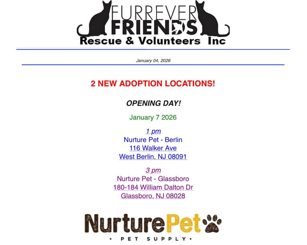 We are a 501(c)(3) nonprofit, all-volunteer, no-kill, foster based cat rescue that strives to save the lives of homeless animals. We have no paid staff; we receive no state or government funding. We operate entirely on donations from caring individuals such as yourself, adoption fees and fundraising events. And, because Furrever Friends Rescue & Volunteers, Inc. is a registered 501(c)(3) nonprofit, your cash and item donations are tax-deductible.